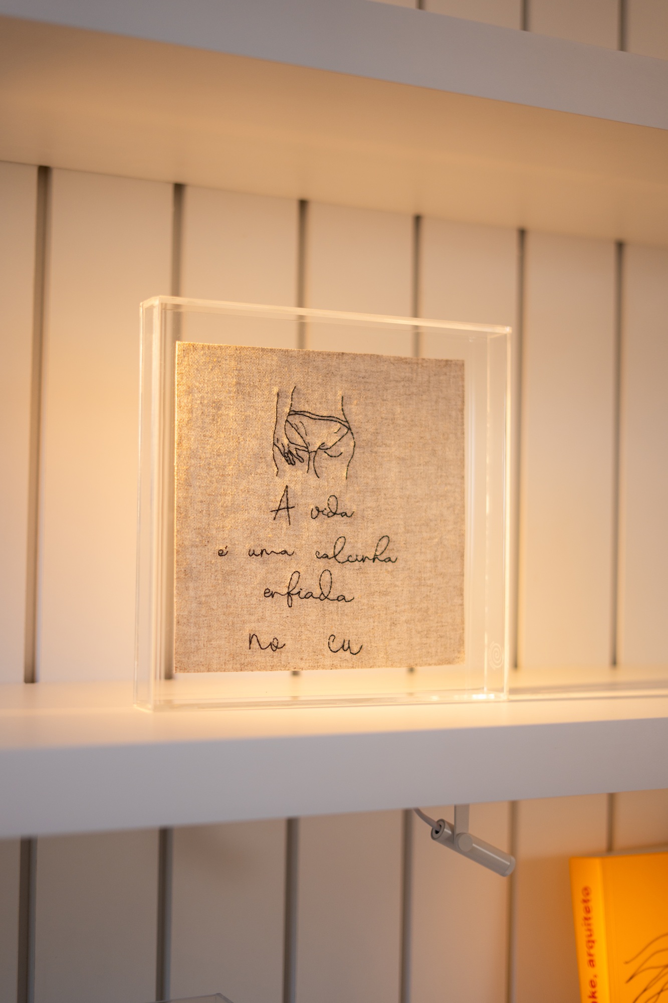 Nossos acrílicos ficam lindos sozinhos ou em uma composição na parede, assim como apoiados em bancadas, aparadores, mesa de centro ou em cima de livros e objetos decorativos.