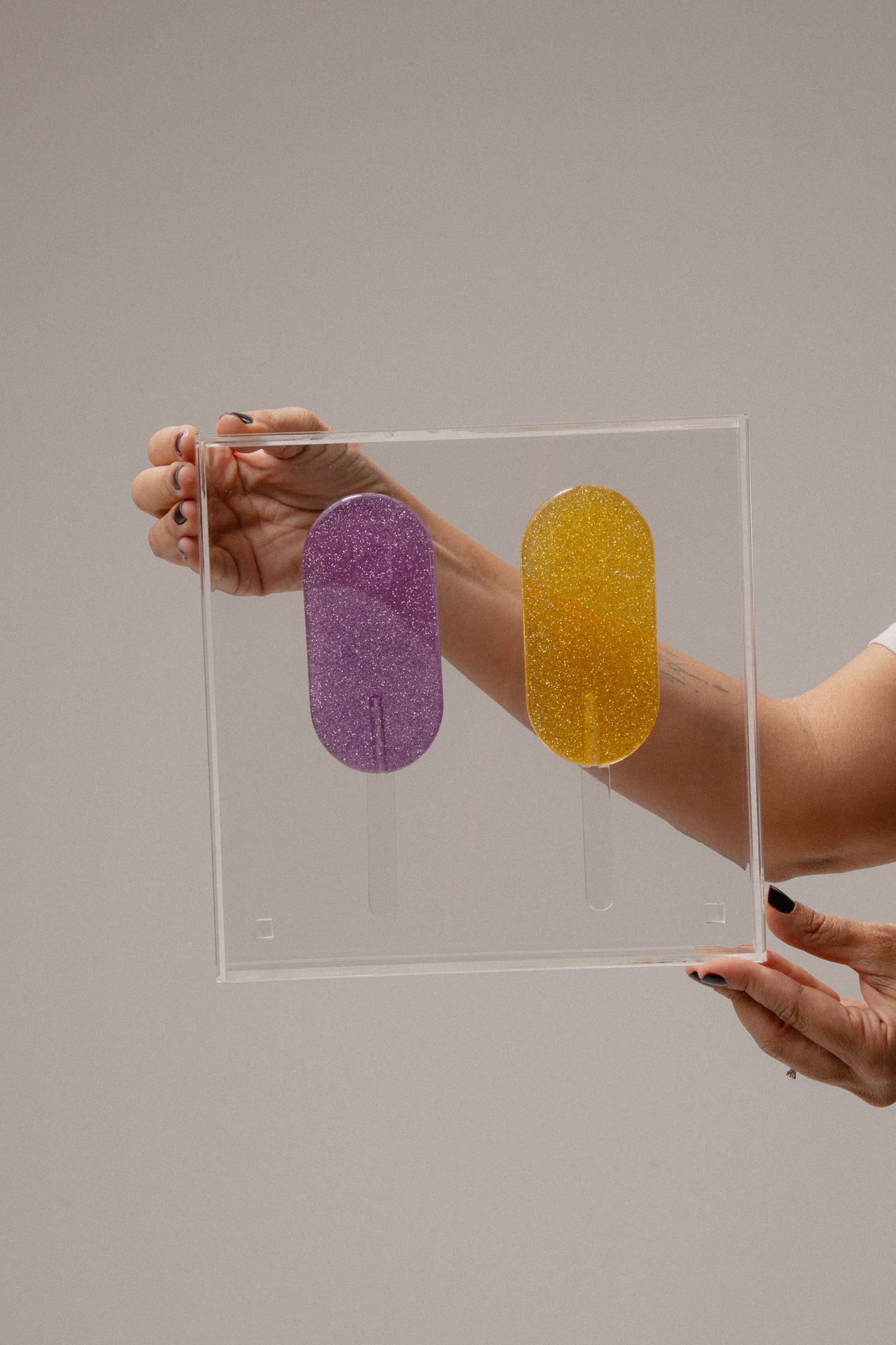 Nossos acrílicos ficam lindos sozinhos ou em uma composição na parede, assim como apoiados em bancadas, aparadores, mesa de centro ou em cima de livros e objetos decorativos.