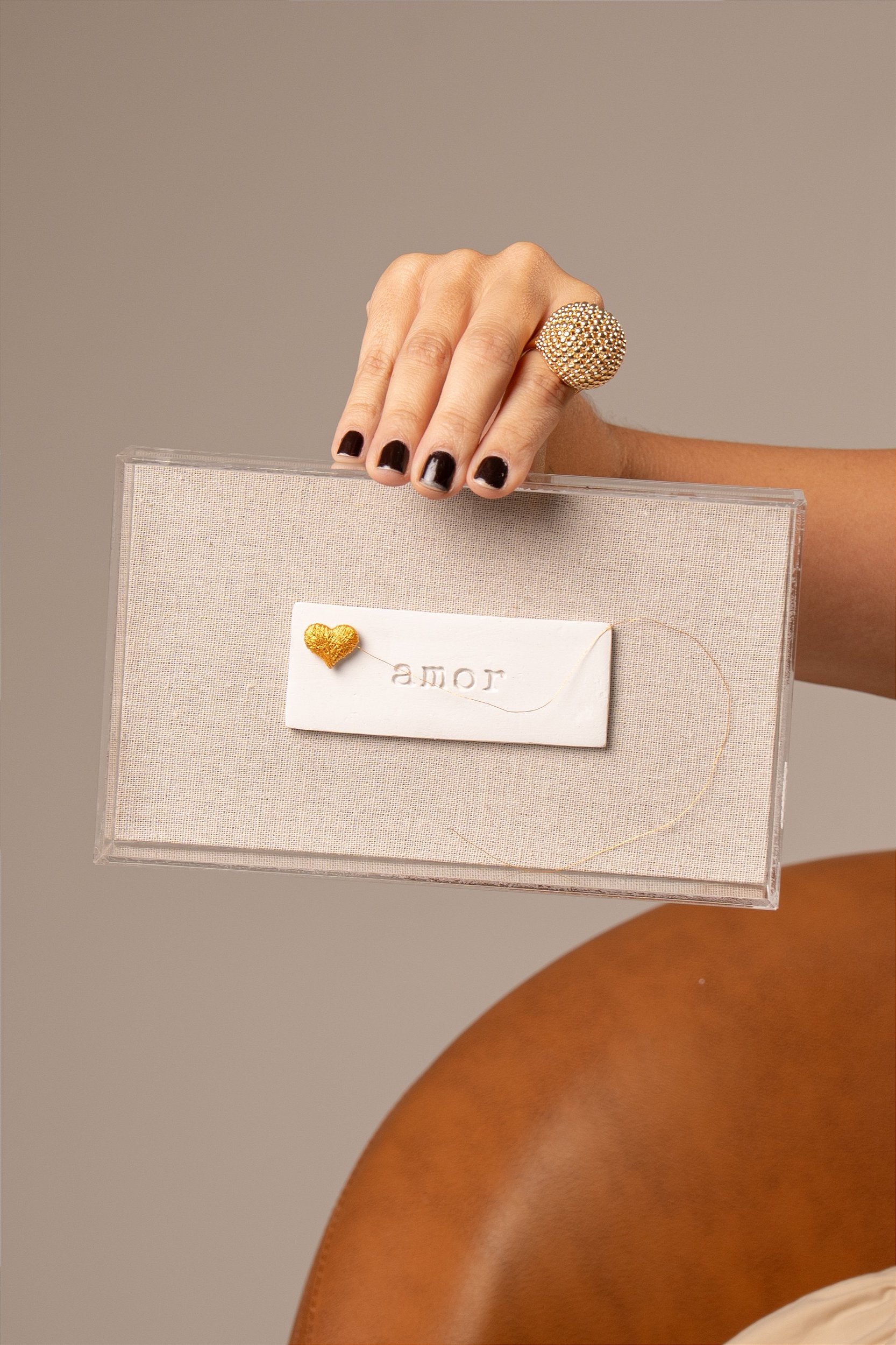 Em composições que unem a leveza do acrílico, a textura do linho e dizeres moldados em cerâmica, cada peça revela beleza, significado e presença, transformando a palavra em um gesto de afeto no ambiente.