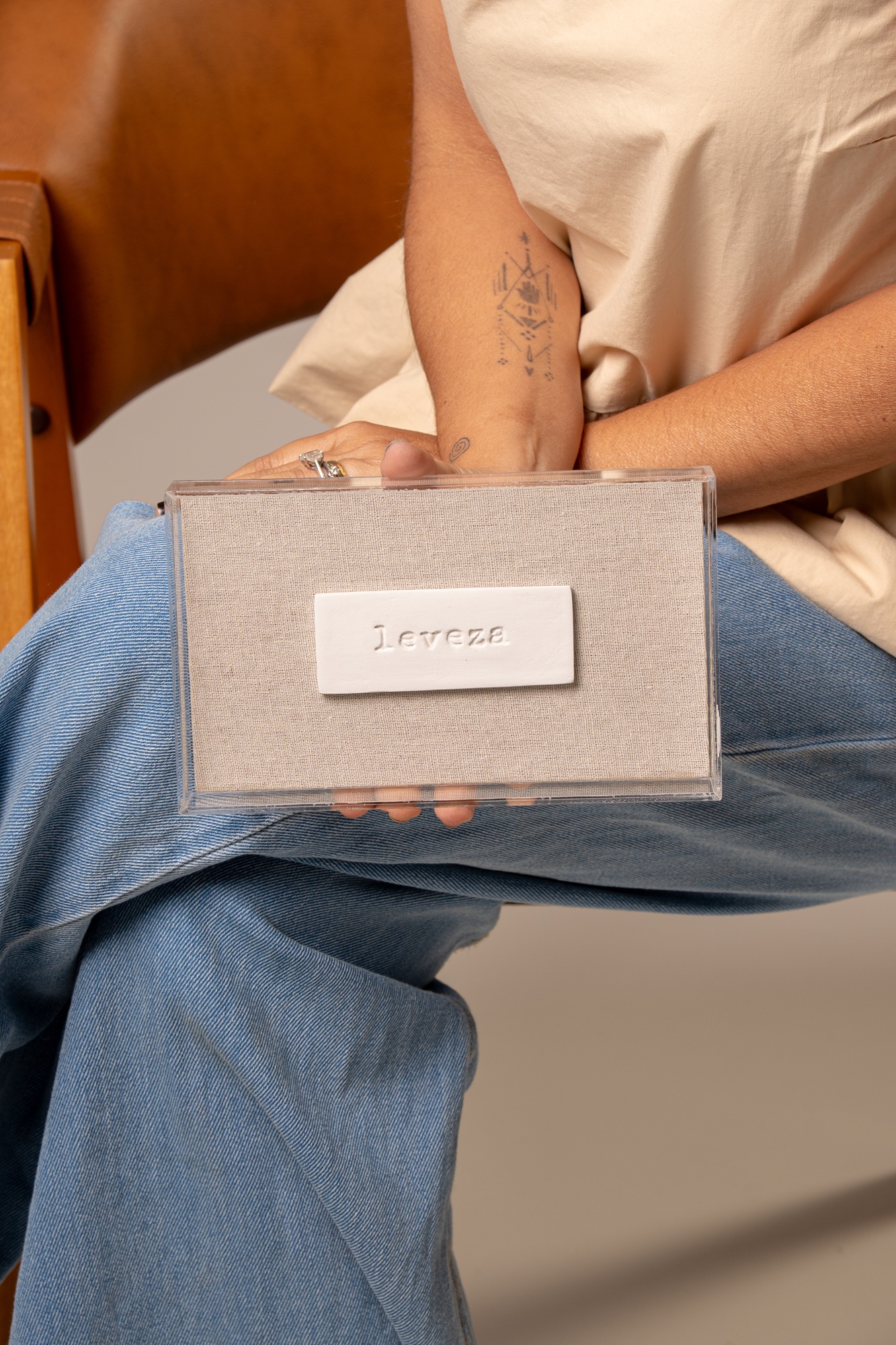 Em composições que unem a leveza do acrílico, a textura do linho e dizeres moldados em cerâmica, cada peça revela beleza, significado e presença, transformando a palavra em um gesto de afeto no ambiente.