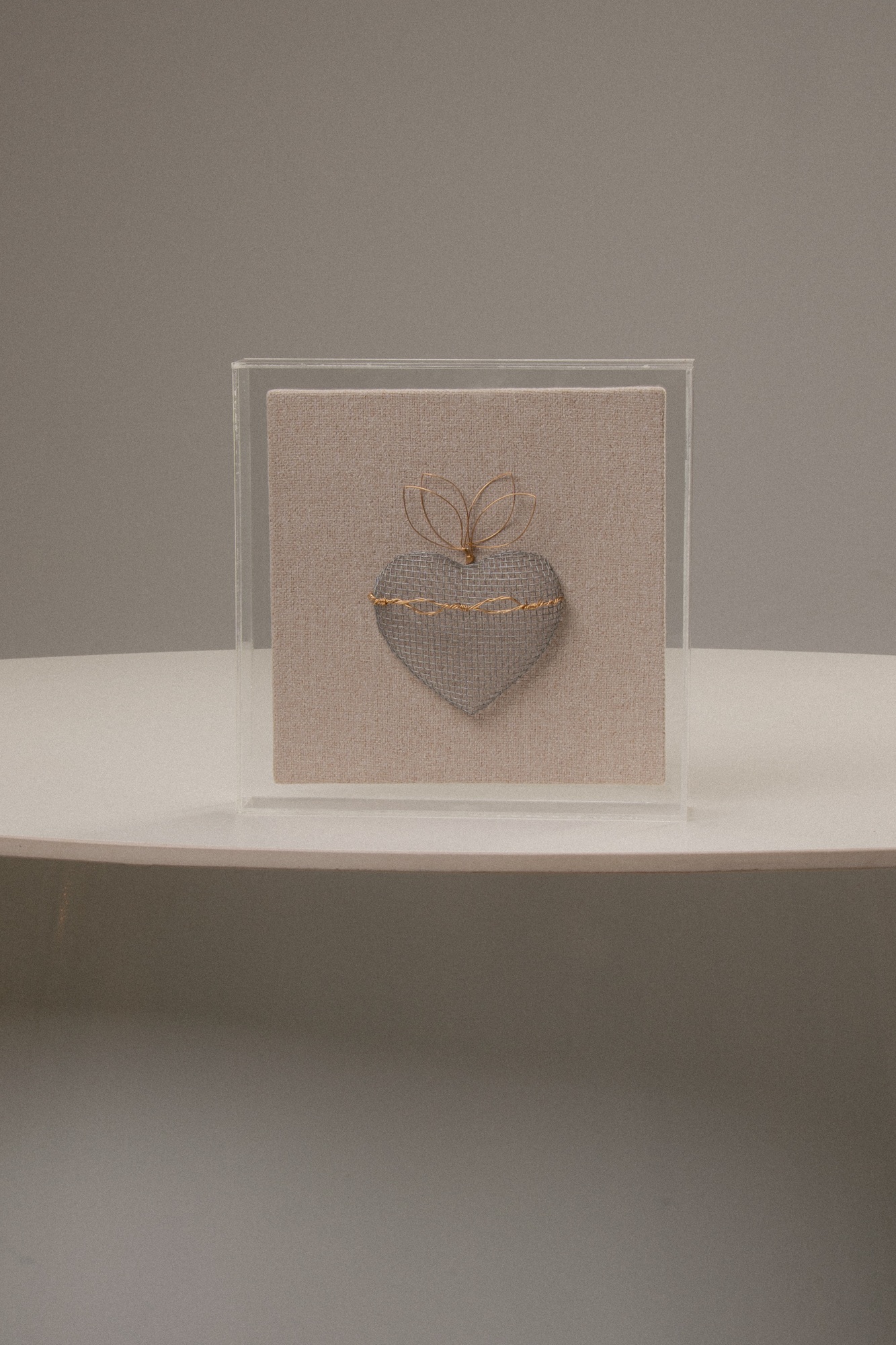 As peças, em acrílico, metal e linho, carregam formas puras e significados profundos. São gestos mínimos que tocam grandes verdades: o nascimento divino, a conexão invisível do amor, a proteção de símbolos ancestrais.