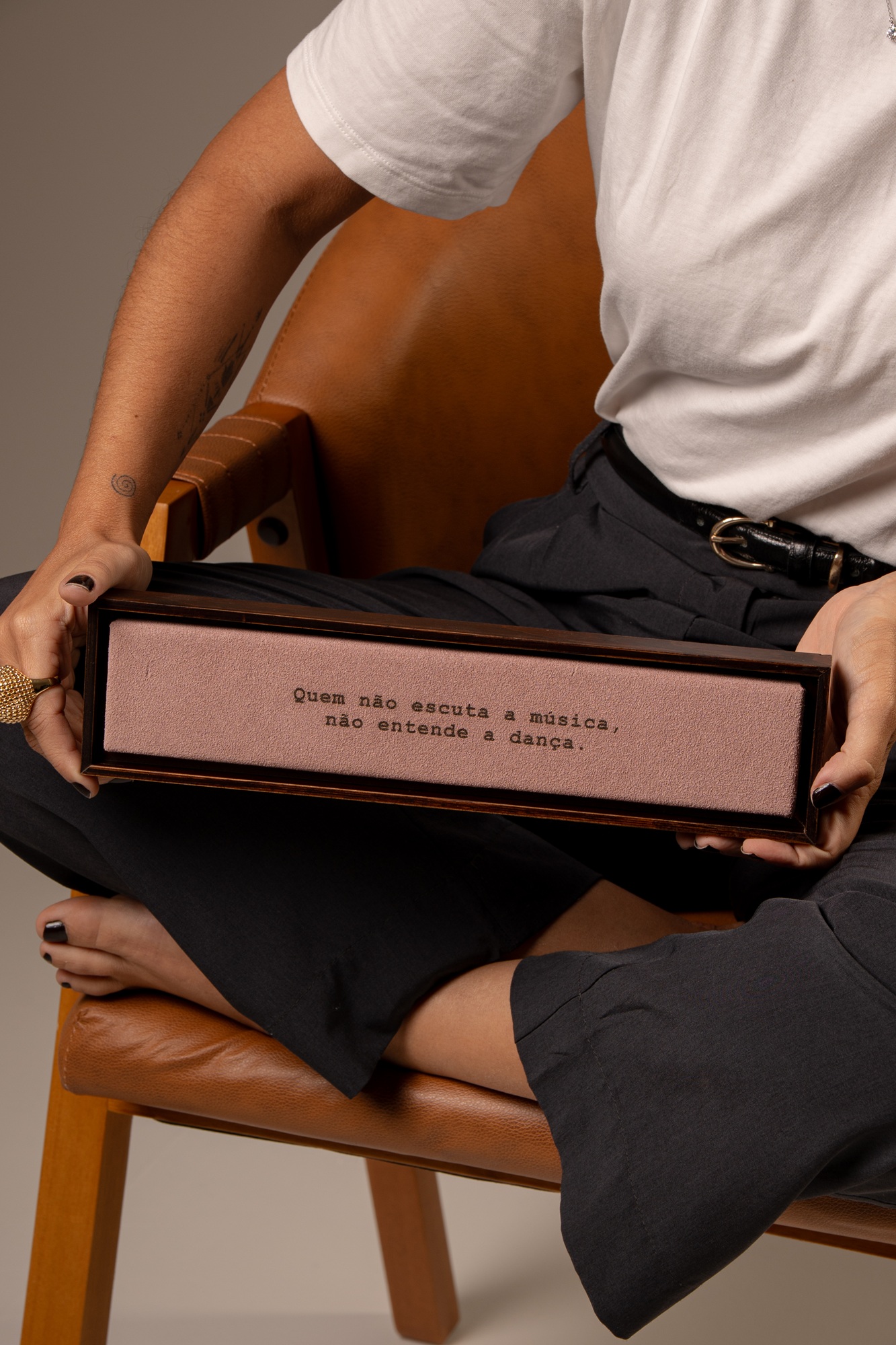 Quadro Régua em Camurça Rosa - Quem não escuta a música, não entende a dança